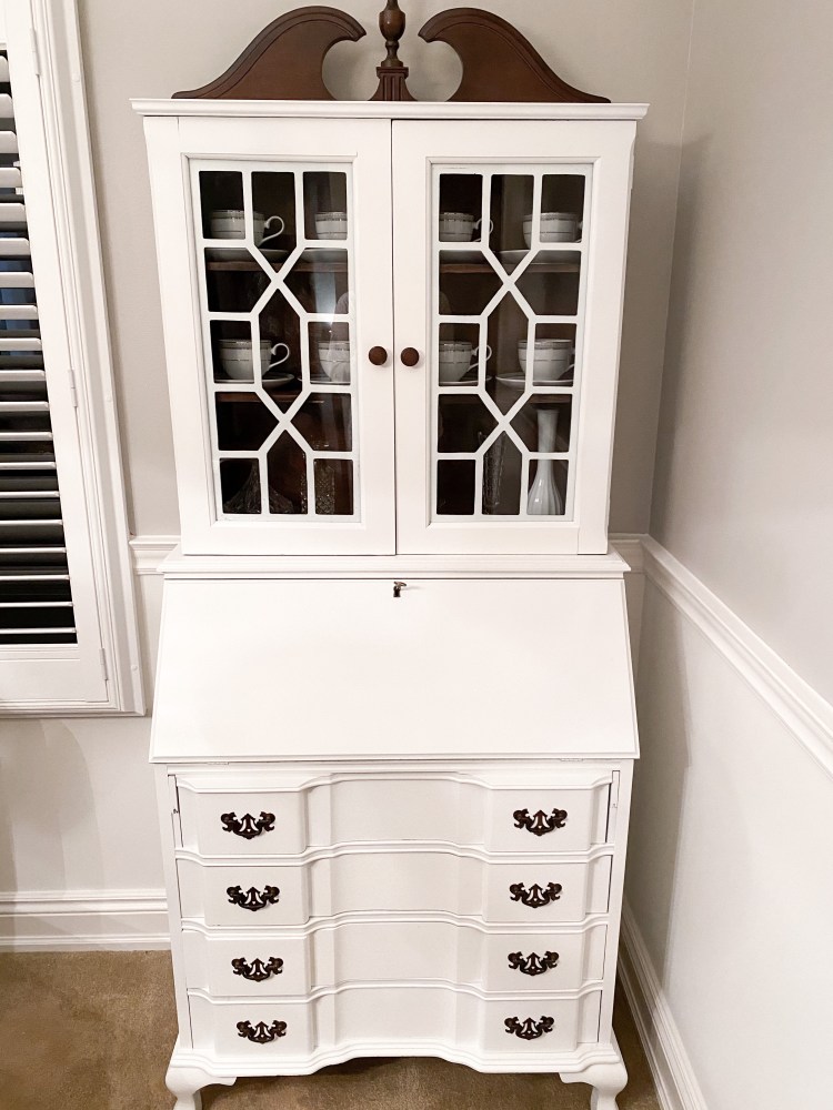 In my previous post Giving Old Pieces New Life I mentioned that I inherited a few pieces of furniture from my Granparents houses. One of those pieces was a 1950’s Secretary. This one took a lot more work than anticipated, due to 65 years of smoke build-up.