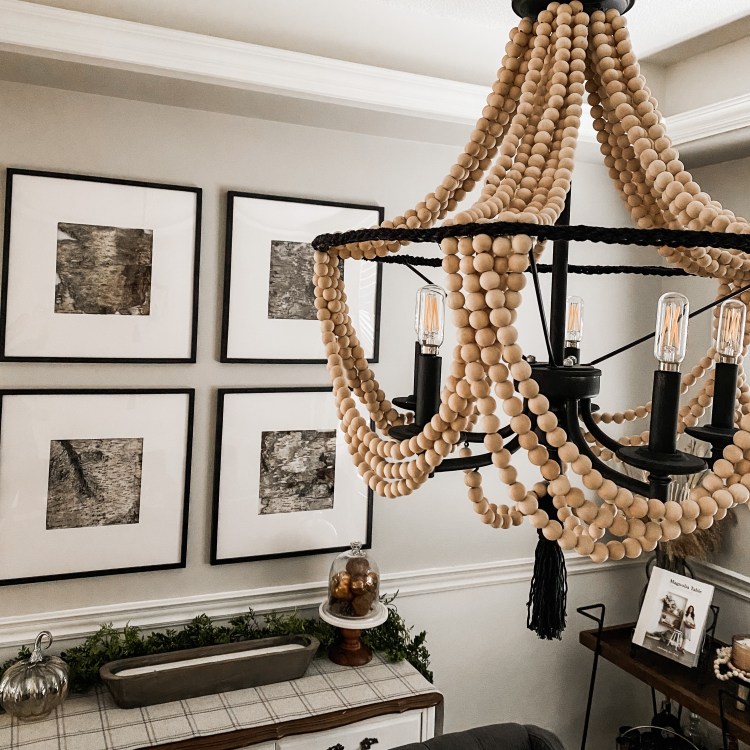 Our dining room chandelier was terrible, but I saw the potential in ripping it apart. Taking off the shade, spraying it black and adding a few hundred beads and we now have a one of a kind light fixture in our dining room. I now understand why these chandeliers can cost so much. This took about 10 hours to finish and many dropped beads. Would I do it all again? Sure would!
